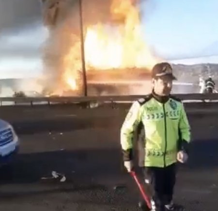 “Opel” tamamilə kül olub. Avtomobildə olan 2 nəfər şəhər xəstəxanasına aparılıb. “KamAZ”ın arxa təkərləri yanıb. Sürücüsü ilə bağlı məlumat yoxdur”.
