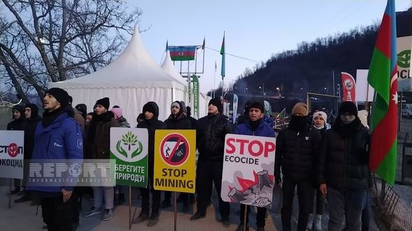Hazırda havanın şaxtalı olmasına baxmayaraq, ekofəallar yolun hər iki tərəfində, hərəkətə maneə törətmədən üzərində Azərbaycan, rus və ingilis dillərində yazılmış plakatlar qaldırıb, şüarlar səsləndirirlər.