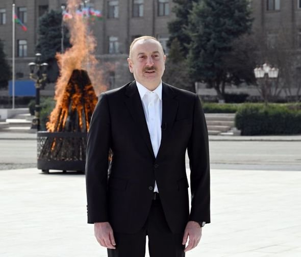 Dördüncü dəfədir ki, bayram tonqalını mən azad edilmiş Qarabağ torpağında qalayıram. 2021-ci ildə Şuşada, 2022-ci ildə Suqovuşanda, keçən il Talış kəndində, bu dəfə isə Xankəndi şəhərində bayram tonqalı qalanır. Bu, böyük xoşbəxtlikdir. Altı ay bundan əvvəl cəmi bir gündən az davam edən antiterror əməliyyatı nəticəsində biz öz suverenliyimizi tam bərpa etdik və bu gün Azərbaycan ərazisində ölkəmizin ərazi bütövlüyü tamamilə təmin edilmişdir.