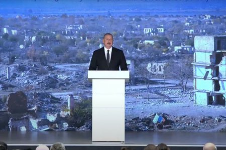 Dövlətimizin başçısı tədbirdə çıxış edir.