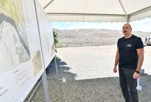 Sonra Prezident İlham Əliyev Xudafərin qəsəbəsinin təməlini qoydu.